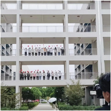 无论是主席台上还是教学楼内纷纷记录着大家身影,同学们伴随着《万疆》的旋律,挥舞着手中的红旗。保持着微笑,从容不迫的歌唱着心中对祖国的爱。镜头在每位同学的脸上一一扫过,历史的车轮也在滚滚向前,带领着朝气蓬勃的同学们,驶向无尽的远方。