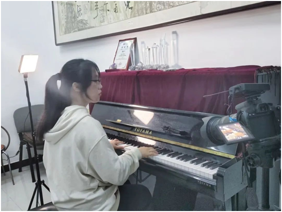 对于伴奏,外院的庞沛昀同学怀着对祖国的敬仰和深情,在文艺部与宣传部共同合作,利用yl23455永利会议室里的钢琴弹奏了《万疆》的旋律。