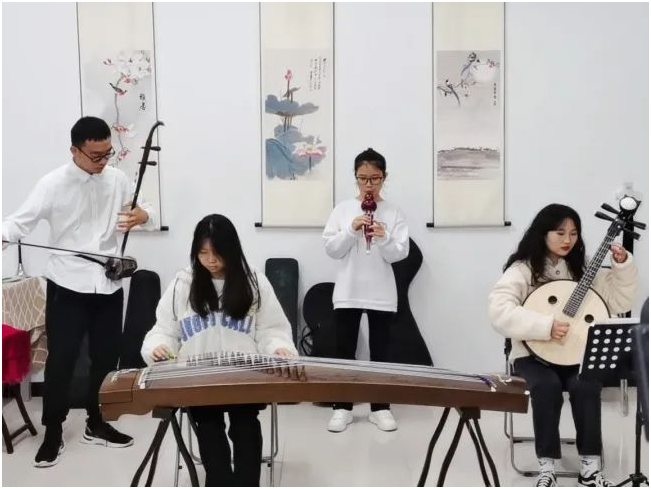 同时民乐社的同学们使用传统乐器二胡、中阮、古筝和葫芦丝进行演奏,把祖国的韵味、山河的辽阔与华夏的壮美演绎得淋漓尽致,赋予了这首国风歌曲不一样的色彩。经历了岁月变迁,悲喜沧桑,华夏大地仍于霞光之中绽放出耀眼光芒,这份民族自豪感也在朗朗旋律中油然而生。