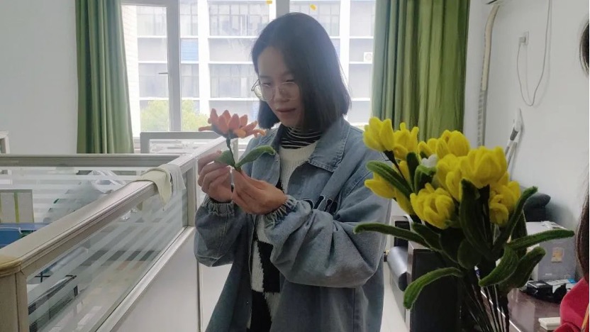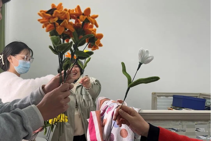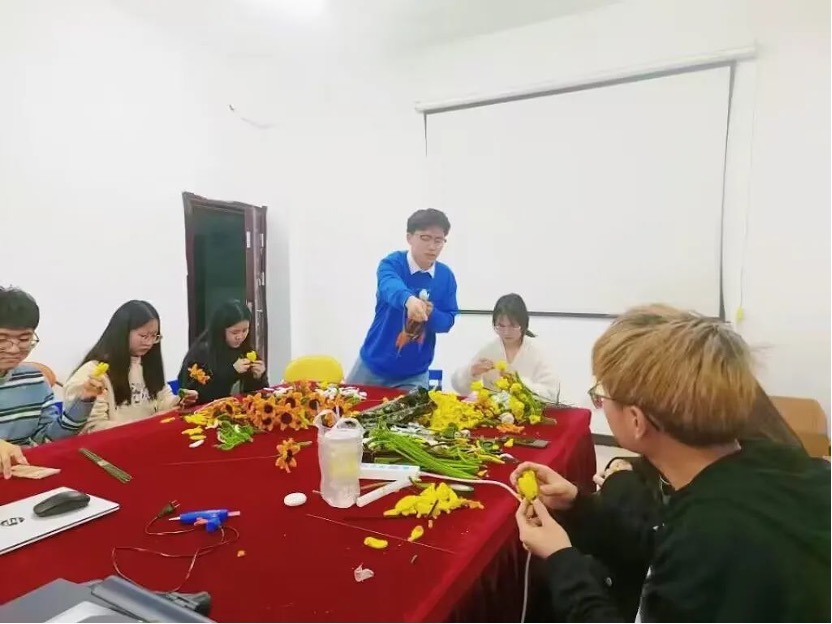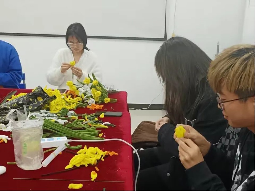 节日前几天,心协成员们利用晚上时间,在学院会议室制作手工,将一根根扭扭棒变成花的形态。从一片一片花瓣的组装、树叶的挑选和整体的调整,都为了使花造型更加立体。经过同学们的分工协作,将大家的心意和祝福融入了一朵朵用心的作品中。