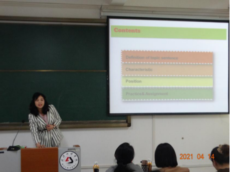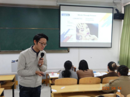 读写译课程教师祝丰萍,抓住课程阅读、写作、翻译的基本逻辑,通过板块练习,螺旋式上升的方式,不断向学生强化主题句概念、作用、位置、写法,使学生将学和练相结合;王尧老师通过课文男生和女生对美有不同的压力和追求,来向学生阐述该现象产生的心理和社会原因,进而引导学生由对外在美的关注转向对内在美的追求;视听说课程教师陈小丽,给大家展示了一节生动有趣的听力课,由对职业的猜测游戏开头,导入课文的词汇和句型,对听力技巧的讲解也非常有针对性。