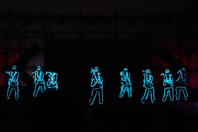 看!那闪烁的荧光,如同夜空中最亮的繁星。荧光在他们的身上跳跃,如同灵动的音符,为这场‘荧光之旅’注入了无尽的活力与激情!他们用舞蹈与灯光的完美结合,打造一场视觉盛宴。