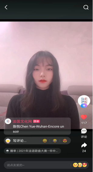 今年法语专业的同学们一如既往地积极参与,经过紧张的校内选拔比赛后,选出了18级陈悦和20级周佳颖两位同学参加领事区半决赛。今年将是法语歌曲比赛首次接受大众投票,从2月2日至2月12日,在优酷视频上搜索“法语文化网”,即可观看2021年法语歌曲大赛各赛区选手的演唱视频,并为自己喜欢的选手投票。