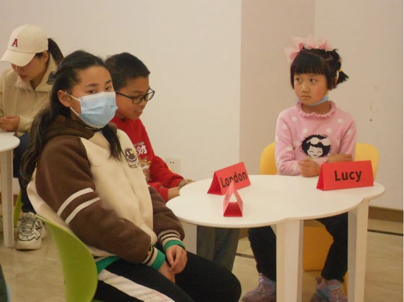 课程达到尾声,志愿者与小朋友们一起进行英语数字抱圈、“Simon says”指令和单词捉迷藏等游戏,小朋友们纷纷参与其中,不亦乐乎。最后小朋友们可以通过整节课所积累的贴纸来换取笔记本和彩虹橡皮等奖励。