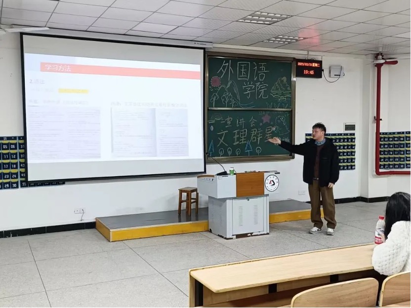20级商务英语班的梁钰鹏学长,他的兴趣爱好非常广泛,热衷于参与各种校园活动和比赛活动,有着十分丰富的工作经历,同时也赢得了许多荣誉。在2021年文理群星颁奖晚会中出演《 疫情之下》被评为“最佳创意奖”,2020-2021学年学风建设活动中被评为优秀学生干部,2022年“穿越时空的对话-写给前辈的一封信”主题红色征文演讲比赛中荣获二等奖等奖项。“那些看似不起波澜的日复一日,会突然在某一天让人看到坚持的意义”这是他的座右铭,梁钰鹏学长用自己的亲身经历分享给我们的单词 、听力 、语法等方面上的学习技巧以及明确的前进目标。