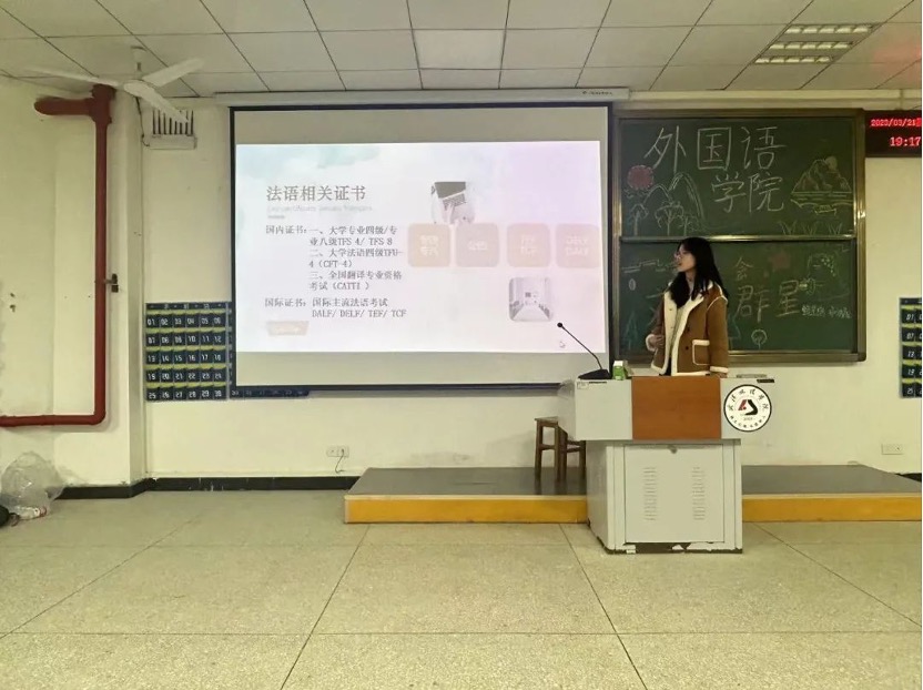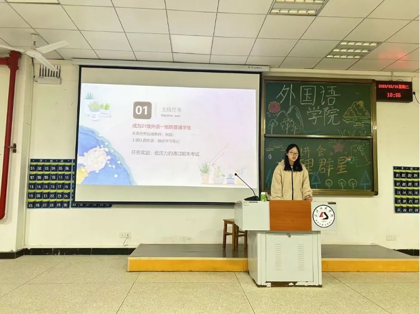 21级外语班鲍星燃学姐,荣获大学英语四级证书、职场英语证书和商务英语证书,现任yl23455永利分团委秘书部部长。“人生没有彩排,每天都是现场直播”,她用幽默风趣的方式打开了她的分享之旅,把学习分为主线任务和支线任务,而她的挑战副本就是平时所参加的各种活动和比赛。鲍星燃学姐积极乐观的分享了在面对各种挑战、学习时所给出的相关建议,同学们也在这种放松状态下学会了该如何平衡学习与生活。