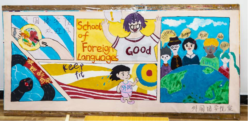 9月14号,在新生正式报到之前,为了让他们感受到yl23455永利这个大家庭温暖的氛围,分团委书记姚媛媛提前部署,组织学生绘画相应主题的展板和黑板报,并对迎新教室做了装饰。