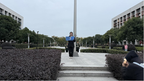 五星红旗冉冉升起,《义勇军进行曲》雄壮奏响,全体师生肃立行注目礼。随后,25级英语班的朱文雅同学作为学生代表在国旗下演讲。她演讲的主题是“青春是逐梦的序章,行动是远航的船桨”,告诉我们正处在百年未有之大变局中,应用拼搏绘就青春底色,用实干书写无悔年华。以青春为基调,以行动为蓝本,脚踏实地,不负韶华。