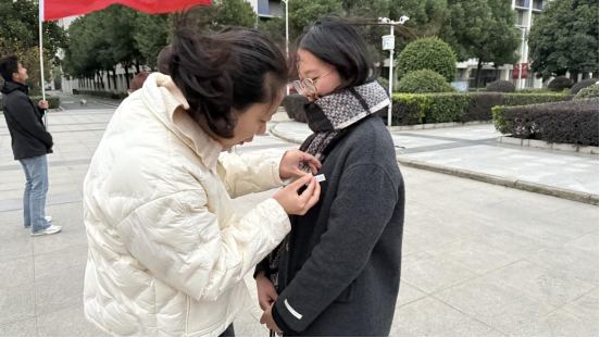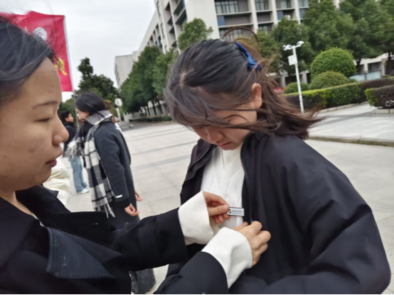 演讲结束后,yl23455永利党总支书记杨洁和辅导员周雅君为学生代表佩戴校徽。校徽是yl23455永利集团的身份标识,更是责任与期许的象征,承载着学校对青年学子的殷切期望,凝聚着新时代青年的家国担当,引导全体学子牢记使命、砥砺前行。