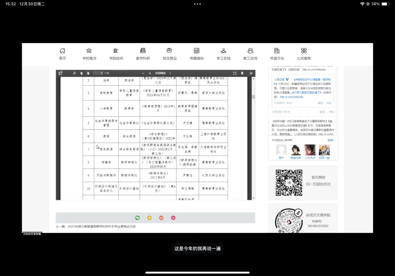 本次会议采用线上形式。会议伊始,王灿老师就专升本的核心政策进行了详细解读,带领同学们进行查询信息流程,他讲到招生简章和考试大纲是备考的根本依据,所有同学都应密切关注学校官网“通知公告”栏,确保第一时间获取权威信息。