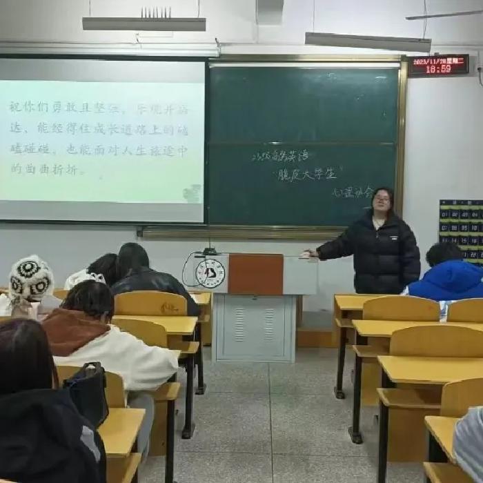 在班会中,各班心理委员精心准备。22级就当代大学生的脆皮现象,列举大学生群体中频发的“脆皮”事例,告诉同学们定期休息和放松是维持心理健康的关键,与人沟通是促进心理健康的重要途径。除此以外,23级心委们还在班会中插入各类游戏互动环节,如外语班开展了“心理知识问答”的小活动,通过互动的形式进行心理知识分享,交流思想动态,并改变提问的常规模式,增加问题的趣味度,吸引同学们积极参与;法语班开展了“举哑铃”的互动环节,从心理健康到身体健康,正向传递大学生身心健康的统一性,同时也增强班级的凝聚力和友谊;商务英语班开展了“手口不一”小游戏,该游戏带来很多精彩的瞬间,其中猜词、快速反应、团队合作还是挑战自我环节,让班级同学感受到了参与的乐趣。