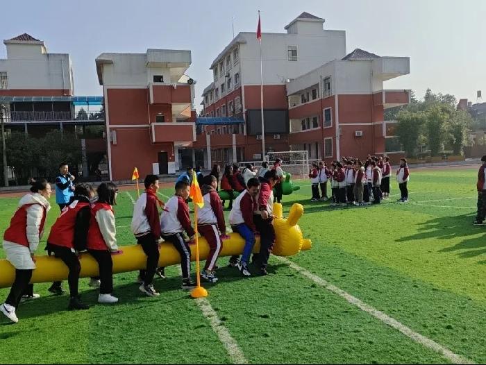 抵达东风小学过后,小助教们开始了场地布置,大家齐心协力共同推进本次活动的开展。活动开始前,小助教们向全体学生讲解了“众星捧月”“毛毛虫竞速赛”以及“趣味英语拼接”游戏的规则,并进行现场示范,确保每一位同学知晓游戏规则。伴随着趣味热身,活动正式开始,现场的每一位同学都争先恐后,积极参与。游戏中不仅展现出体育竞技精神,还激发了同学们广泛的趣味英语学习兴趣。