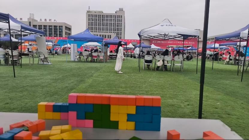 10月10日-14日,校园操场同步举办社团游园会,单词拼图、英文听歌识曲等趣味游戏吸引大批同学参与,口语对话、乐器演奏等风采展示立体化呈现社团特色。