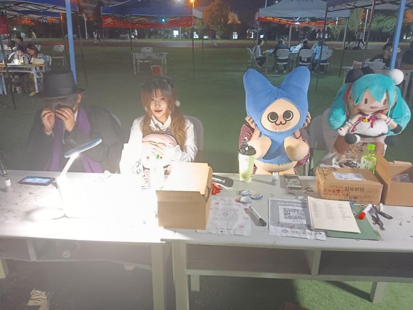 10月10日校园游园会上,社团摊位成为全场焦点,色彩斑斓的动漫海报、精致的手办模型、社员自制周边吸引众多同学驻足,动漫知识问答、角色猜谜等互动游戏让大家在欢乐中深化对动漫文化的认知,身着华丽服装的coser惊艳亮相,仿佛次元角色穿越而来,引得同学们纷纷拍照留念,热闹的招新随舞活动更将现场气氛推向高潮。