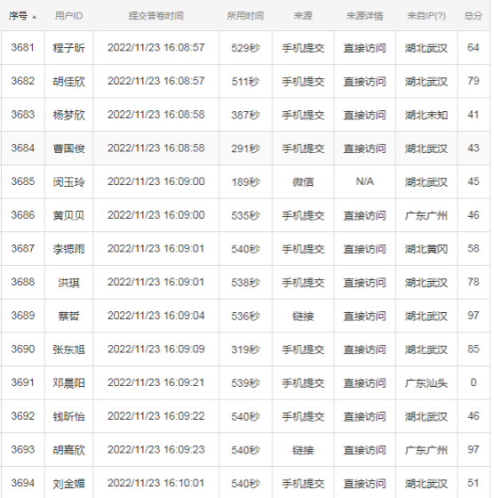 系列活动依托在线平台,每两周进行一次四级词汇测试。活动一经发布,就引起全校同学广泛关注,参与热情高涨并持续升温。活动开展过程中,同学们养成了每天记单词、学习英语的好习惯,提高了英文单词的熟练程度,加深了对你单词含义的理解,也为即将到来的大学英语四级考试打下了坚实的基础。