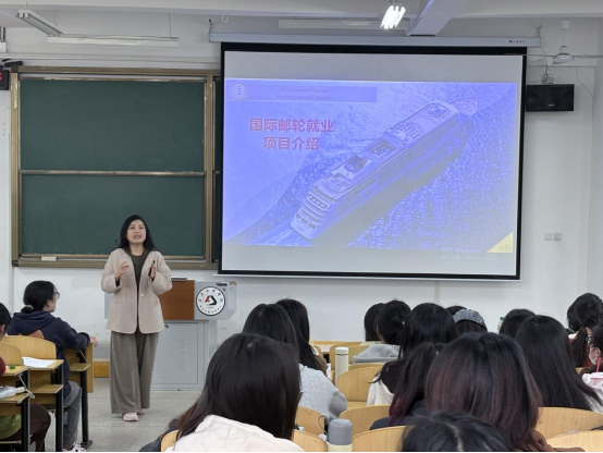 国际邮轮就业代表则聚焦行业前沿动态,系统讲解了邮轮行业的市场发展前景、独特运营模式及鲜明行业特色,清晰明确了各类岗位的招聘标准与核心能力要求。此外,他还从专业技能提升、职场适应融入、职业目标达成等多个维度,为同学们规划了实习阶段的具体成长方向,极具指导性。