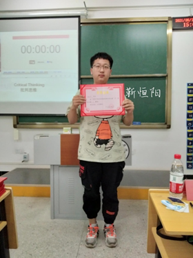 在本次即兴演讲中,黎诗丹、常佳睿和骆思雅三位同学荣获本次演讲比赛一等奖;黄宇、靳恒阳、李豪、张天赫、谭玉环荣获本次演讲比赛二等奖;徐蓉、陆泽玮、张佳新、谭莉娜、林茹雪、王锦、陈耀霞荣获三等奖。