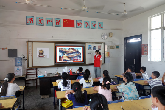 中国传统建筑承载了千年文明深厚的文化底蕴,其结构精巧,造型独特具有很高的艺术价值。为加深青少年对文化的认知,7月9日,华韵心文化志愿服务队在郎君镇中心小学开展了一堂别开生面的中国传统建筑双语课程。