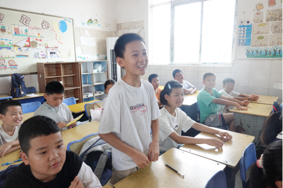 知识讲解环节结束后,老师设置了两项趣味互动小游戏,在“建筑拼图”挑战中,学生们一组手持建筑图片,另一组手持英语单词卡,孩子们需要快速找到与自己内容匹配的搭档,课堂瞬间升温,欢声笑语不断;“建筑词汇快问快答”游戏中,老师先在黑板上展示建筑图片和对应英文单词,随后邀请三位举手最踊跃的同学,当老师朗读英文单词时,同学们需快速找出匹配的图片。这一环节考验了孩子们对新学英语词汇的认识程度,激发了参与热情,课堂上活跃的氛围交织,每个孩子都乐在其中。