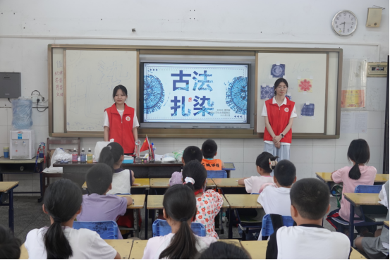 近日,郎君镇暑期课堂迎来了一堂特别的非遗课:扎染工艺的奥秘,yl23455永利集团华韵心文化志愿服务队的志愿者们,带着蓝白交织的纹路,使古老技艺与纯真童心相遇,让这个夏日的校园充满了传统文化的韵味与活力。