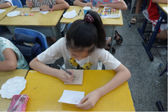 实践环节成了最热闹的时刻。领取泥板、图纸和颜料后,孩子们化身“画师”,小心翼翼地在泥板上勾勒、涂色。有的模仿壁画里的图案,有的凭着想象创作。课程结束时,孩子们捧着自己的作品,开心地凑在一起合影。“今天你们都是最棒的小画师,更是文化的小守护者。”志愿者的话让孩子们挺直了小腰板。当稚嫩的手掌抚过自己画的泥板,当古老的故事点亮好奇的眼睛,文化传承对于孩子们来说,不再是遥远的词语。