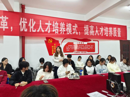 活动开场,周老师对学生会新干事表示欢迎,对所有成员开学以来的辛勤付出给予高度认可,让在场同学倍感振奋;随后叮嘱大家把握好工作与学习的平衡,提醒同学们在踊跃投身学生会事务的同时,切勿松懈学业;接着又着重强调各部门分工协作的关键意义,鼓励大家同心协力,推动学生会工作高效开展;最后,老师对后续工作作出规划,激励全体成员以青春之力担当使命,在担当中成才。