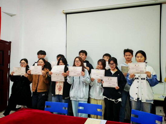 在激动人心的颁奖环节,学院对在运动会中做出突出贡献的同学和集体进行了隆重表彰。他们在运动会上,或在赛场上奋力拼搏,为学院赢得荣誉;或在幕后默默付出,保障赛事顺利进行。每一个奖项都是对他们努力与付出的认可。颁奖结束后,全体获奖人员合影留念,定格这一荣耀时刻。这些榜样将激励着更多同学积极参与学院活动,为学院的发展贡献自己的力量。