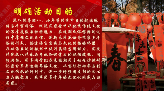 本次活动以“寻年味传心火”为核心,结合视频、双语分享、趣味问答等多元形式,认识腊八与小年的历史渊源和民俗特色:追溯腊八节发展历程,详解相关习俗寓意;围绕小年南北日期差异,阐释祭灶神、扫尘等年俗内涵,让大家读懂传统节日的文化密码。